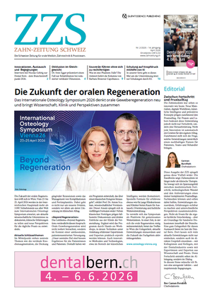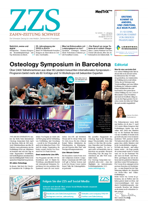 Lesen Sie hier alle Ausgaben der Zahn-Zeitung als PDF. Oder wechseln Sie zur französischen Ausgabe Le Monde Dentaire Suisse (LMDS).